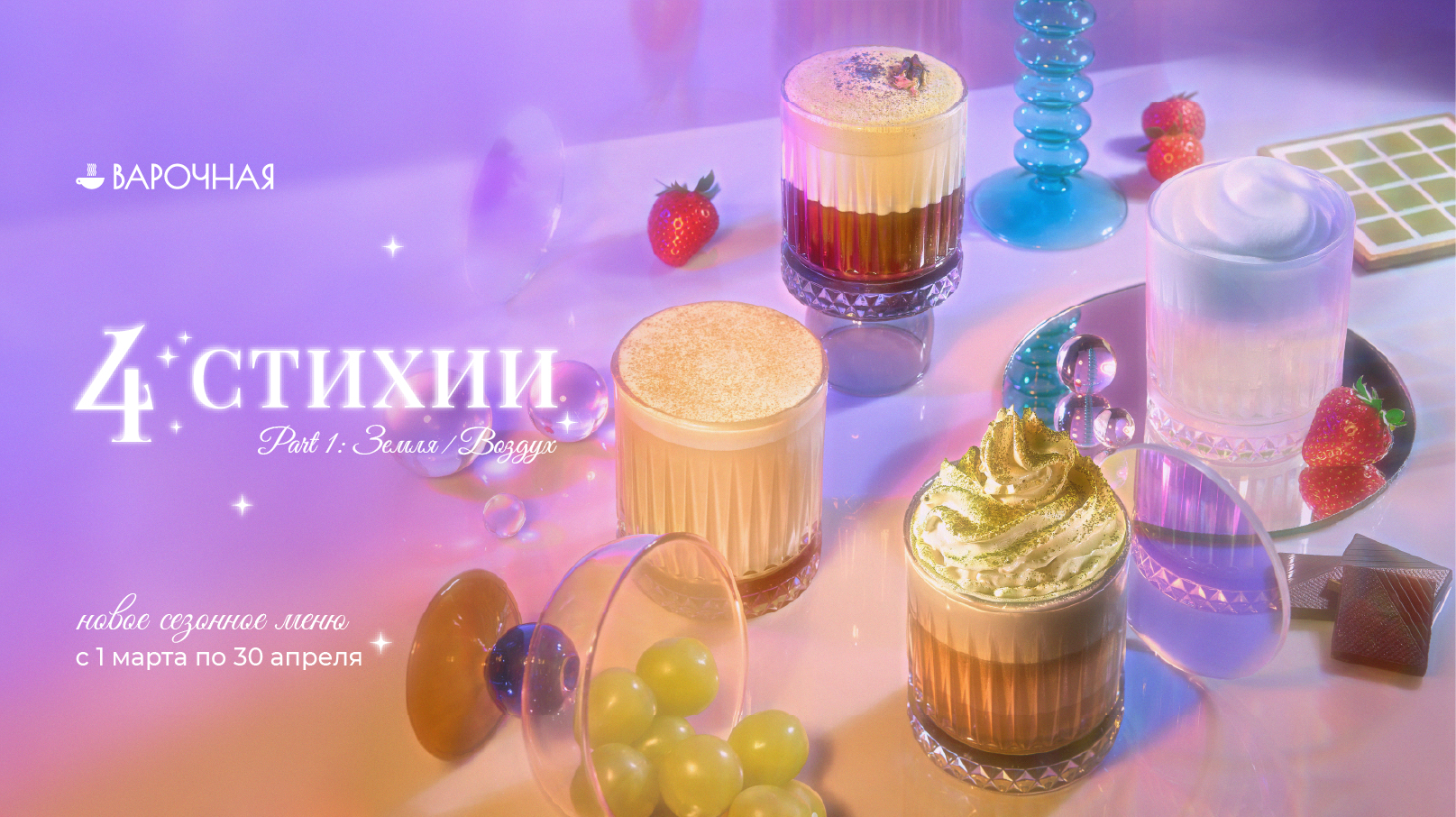 Каждая стихия проявляется поэтапно - через свой напиток, свою атмосферу и своё настроение.